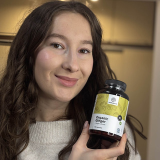 Ingrediente: ghimbir* în pulbere (Zingiber officinale), hidroxipropil metilceluloză (HPMC; înveliș vegetal al capsulei). *Din producție ecologică certificată. Distribuția este controlată de SI-EKO-002. Agricultură din afara UE.