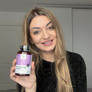 „Iau în mod regulat Hair Beauty Complex pentru a-mi menține părul sănătos, deoarece îmi oferă toate cele mai importante vitamine și minerale.”