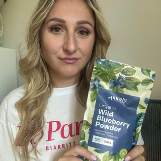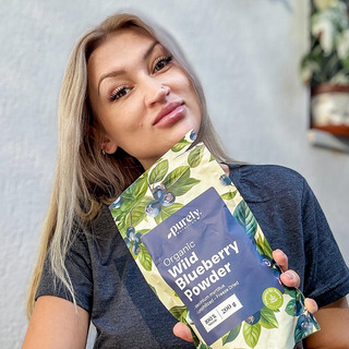 „Puterea pulberei de afine! Adaosul perfect la smoothie-urile mele și la terciul de dimineață.”